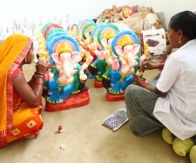 राज्य की महिला स्व सहायता समूहों ने अपने हुनर और मेहनत से एक नई पहचान बनाने में सफलता हासिल की है। महात्मा गांधी ग्रामीण औद्योगिक पार्क गोड़बहाल से जुड़कर मां चंद्रहसिनी महिला समूह की दीदियां विभिन्न आकार और रंगो की आकर्षक गणेश मूर्ति का निर्माण कर रही हैं। ये महिला समूह पहले माटी कला कार्य से जुड़कर कार्य कर रही थीं।