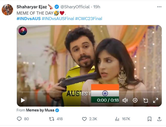 वहीं, जीओ टीवी ने प्रसारण के दौरान कहा, एक अरब सपने चकनाचूर हो गए। इसके अलावा पाकिस्तान के फैंस ने भी मीम्स बनाकर शेयर किए। सभी ने भारत की हार और ऑस्ट्रेलिया की जीत का जश्न मनाया। भारत का तीसरी बार वर्ल्ड चैंपियन बनने का सपना टूटा है।