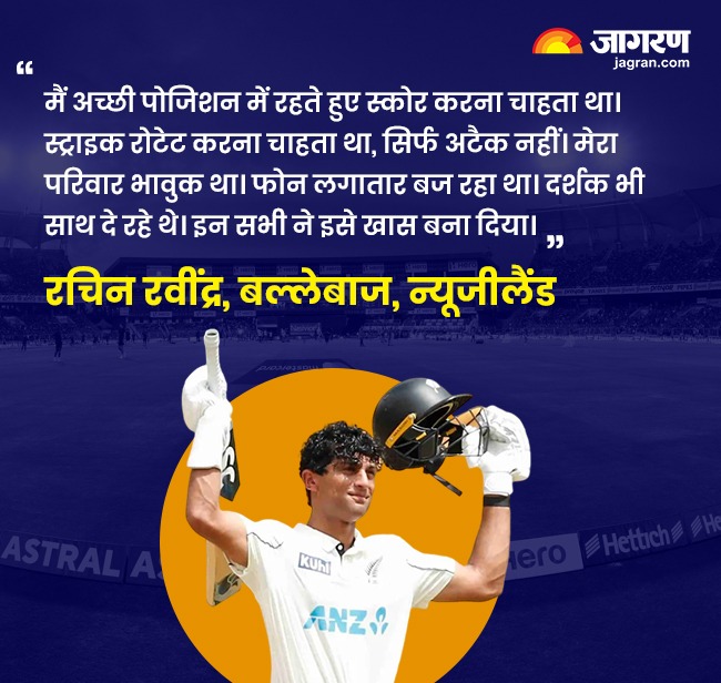 रवींद्र ने बताया कि बेंगुलरु में शतक जमाने के बाद उनका फोन लगातार बज रहा था। उन्होंने कहा, "मैं अच्छी पोजिशन में रहते हुए स्कोर करना चाहता था। स्ट्राइक रोटेट करना चाहता था, सिर्फ अटैक नहीं। मेरा परिवार भावुक था। फोन लगातार बज रहा था। दर्शक भी साथ दे रहे थे। इन सभी ने इसे खास बना दिया।"