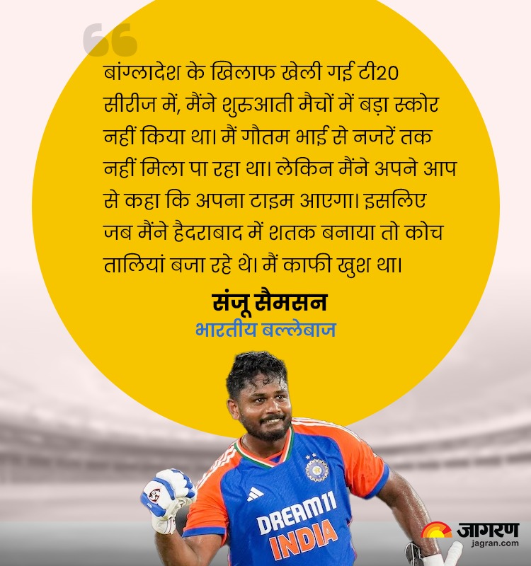 स्पोर्ट्स डेस्क, नई दिल्ली। भारतीय टीम के युवा विकेटकीपर-बल्लेबाज संजू सैमसन ने हैदराबाद में बांग्लादेश के खिला टी20 मैच में तूफानी शतक ठोका था। उनका ये पहला टी20 इंटरनेशनल शतक था। संजू की इस पारी से हर कोई खुश था। टीम के कप्तान सूर्यकुमार यादव से लेकर कोच गौतम गंभीर तक संजू की पारी पर खुशी जाहिर कर रहे थे। लेकिन एक समय ऐसा था जब संजू नए हेड कोच गंभीर से आंखें मिलने से डर रहे थे।