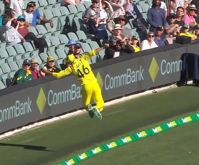 AUS vs ENG 1st ODI: एगर ने हवा में उछलते हुए की ऐसी फील्डिंग की दांतों तले दबा लेंगे उंगलियां, देंखे वीडियो