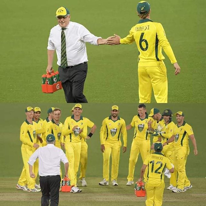 दरअसल श्रीलंका की टीम इन दिनों ऑस्ट्रेलियाई दौरे पर है। यहां मनुकार ओवल मैदान पर लंकाई टीम प्रैक्टिस मैच के तौर पर अपना एक मैच प्रधानमंत्री एकादश के खिलाफ खेल रही थी। इस टी-20 मुकाबले में प्रधानमंत्री स्कॉट मॉरिसन वाटरब्बॉय बने नजर आए। मॉरिसन को उनकी टीम के ही खिलाडि़यों समेत दर्शक दीर्घा में बैठे लोगों ने देखा तो सब हैरान रह गए। टीवी कैमरे और खेल प्रेंजेटर भी हैरान थे कि किसी देश के प्रधानमंत्री अपने ही खिलाडि़यों के लिए ड्रिंक्स मैदान पर लेकर दौड़ते-दौड़ते आ रहे हैं।