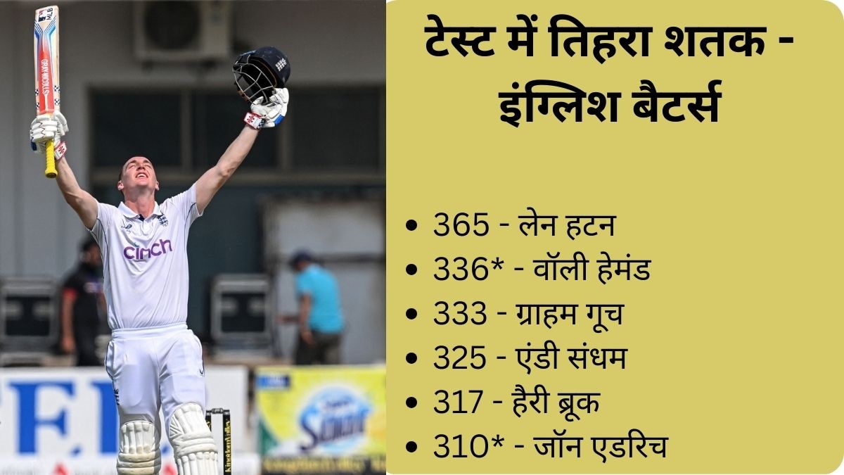 बता दें कि हैरी ब्रूक ने मुल्तान टेस्ट को यादगार बनाते हुए अपने करियर का पहला तिहरा शतक जड़ा। दाएं हाथ के बल्लेबाज ने 310 गेंदों में 28 चौके और तीन छक्के की मदद से अपनी ट्रिपल सेंचुरी पूरी की। ब्रूक टेस्ट क्रिकेट में तिहरा शतक जमाने वाले छठे इंग्लिश बल्लेबाज बने। ब्रूक 34 साल बाद टेस्ट क्रिकेट में तिहरा शतक जमाने वाले इंग्लिश बल्लेबाज बने।