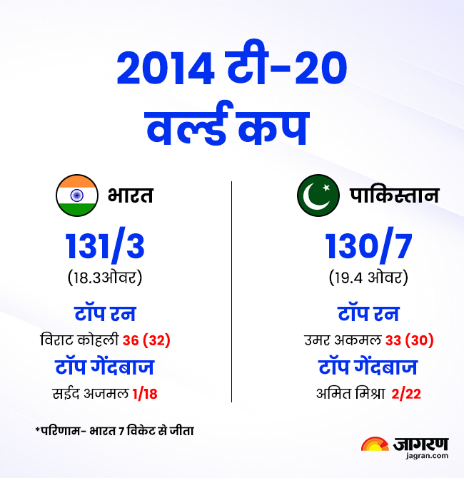 बांग्लादेश के ढाका में आयोजित इस टूर्नामेंट में दोनों देश आमने-सामने हुए। इस मैच में पाकिस्तान ने 130 रनों का लक्ष्य भारत को दिया, जिसे भारत ने तीन विकेट खोकर हासिल कर लिया। टी20 वर्ल्ड कप में पाकिस्तान के खिलाफ यह भारत की लगातार चौथी जीत थी।