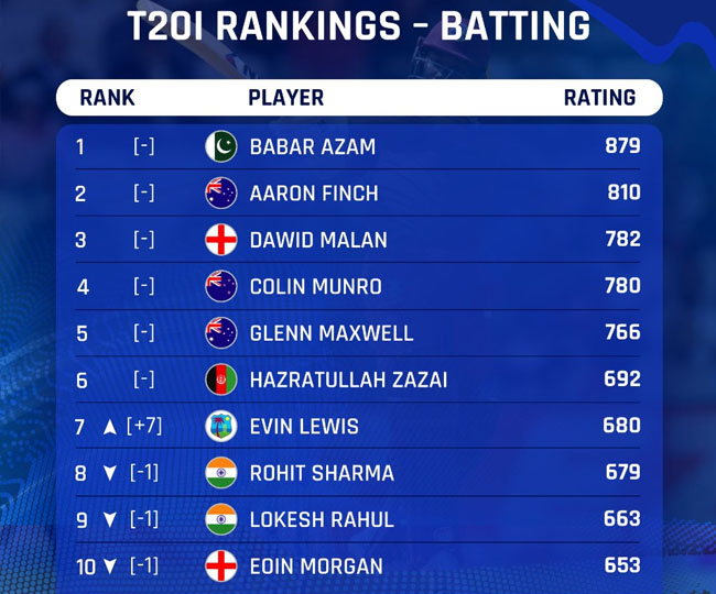 नई दिल्ली, जेएनएन। ICC T20I Rankings: वेस्टइंडीज और अफगानिस्तान के बीच लखनऊ में खेली गई तीन मैचों की T20I सीरीज के बाद इंटरनेशनल क्रिकेट काउंसिल (ICC) ने T20 रैंकिंग जारी कर दी है। आइसीसी की मौजूदा टी20 रैंकिंग में पाकिस्तानी बल्लेबाज बाबर आजम का दबदबा है, जो नंबर एक पर कामय हैं। उधर, भारतीय बल्लेबाज रोहित शर्मा और केएल राहुल की रैंकिंग में गिरावट आई है।