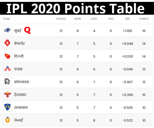 IPL 2020 के प्लेऑफ में पहुंचने वाली पहली टीम का ऐलान, अब इन 6 टीमें में है रेस