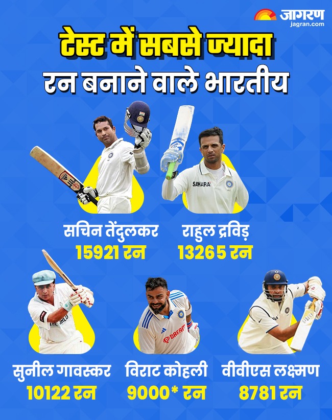 भारत की ओर से टेस्ट में सबसे ज्यादा रन बनाने का रिकॉर्ड सचिन तेंदुलकर के नाम है। सचिन ने 200 टेस्ट की 329 पारियों में 15921 रन बनाए थे। इस दौरान उन्होंने 68 अर्धशतक और 51 शतक लगाए थे। इस लिस्ट में दूसरे नंबर पर भारतीय टीम के पूर्व हेड कोच राहुल द्रविड़ हैं। द्रविड़ ने 163 टेस्ट की 284 पारियों में 13265 रन बनाए। सूची में तीसरे नंबर सुनील गावस्कर हैं, जिन्होंने 125 टेस्ट की 214 पारियों में 10122 रन बनाए थे।