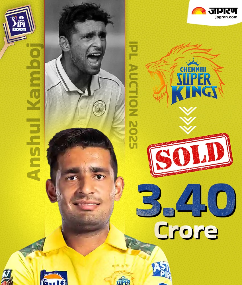 फिर थोड़ी देर बाद मुंबई इंडियंस ने बोली को 3 करोड़ तक पहुंचाया और 3.40 करोड़ रुपये की सीएसके की बोली के सामने मुंबई की टीम ने आगे कोई बोली नहीं लगाई और इस तरह अंशुल कंबोज 3.40 करोड़ रुपये में CSK में शामिल हुए।