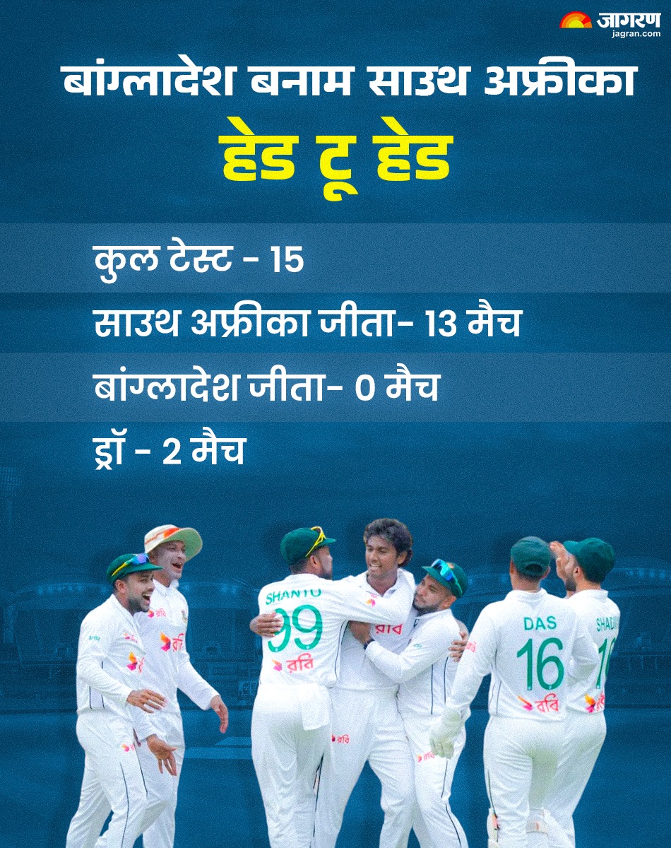 वहीं बांग्लादेश की कोशिश साउथ अफ्रीका से बदला लेने की होगी। पहले मैच में मेजबान टीम ने काफी खराब प्रदर्शन किया था जिसका खामियाजा उसे हारकर उठाना पड़ा था। दूसरे टेस्ट मैच में वह जीत हासिल कर सीरीज बराबर करने को उतावली होगी। दोनों टीमें इस मैच से पहले टेस्ट क्रिकेट में कुल 15 बार भिड़ चुकी हैं जिसमें से 13 मैचों में साउथ अफ्रीका को जीत मिली है।