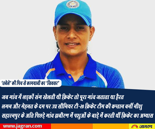 अश्वनी त्रिपाठी, सहारनपुर। मेधा के अंकुरण के लिए संसाधनों का होना आवश्यक नहीं..। यदि मन में विश्वास और इरादों में दृढ़ता हो तो चुनौतियों का फलक भी झुकने लगता है। उत्तर प्रदेश के सहारनपुर जिले के अति पिछड़े गांव झबीरण की बिटिया नीशु चौधरी ने इसे साबित भी किया है। उसने संसाधनों की कमी के बीच क्रिकेट के गुर सीखे, यहां तक कि पशुओं के बाड़े में लड़कों के साथ क्रिकेट का अभ्यास किया। चुनौतियों ने रास्ता रोकने की कोशिश की, लेकिन प्रतिभा के ‘बाउंसर’ से उसने हर मुश्किल को ‘क्लीन बोल्ड’ कर दिया। नेतृत्व क्षमता के कारण आलराउंडर नीशू को उत्तर प्रदेश की सीनियर महिला टी-20 क्रिकेट टीम का कप्तान बनाया गया है।