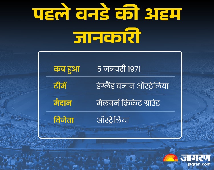 पहला वनडे आज से 54 साल पहले 1971 में पांच जनवरी को खेला गया था। ये मैच इंग्लैंड और ऑस्ट्रेलिया के बीच खेला गया था। मैदान था मेलबर्न क्रिकेट ग्राउंड, लेकिन इस मैच की वजह बारिश थी। उस समय इंग्लैंड की टीम एशेज सीरीज के लिए ऑस्ट्रेलिया के दौरे पर थी। मैच से पहले मेलबर्न में जमकर बारिश हुई थी। दोनों के बीच तीसरा टेस्ट मैच होना था और इससे पहले लगातार चार दिन बारिश हुई थी। इसी कारण मैच शुरू नहीं हो सका था। अब मैच न होने की स्थिति में ऑस्ट्रेलिया पर दबाव था क्योंकि एमसीजी पर हजारों की तादाद में दर्शक मौजूद थे। तकरीबन 46 हजार दर्शक उस मैच को देखने आए थे। अगर मैच नहीं होता तो दर्शकों को नुकसान होता।