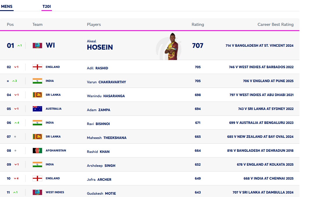ICC T20I Bowling Rankings: वरुण-रवि बिश्नोई ने भी लगाई छलांग