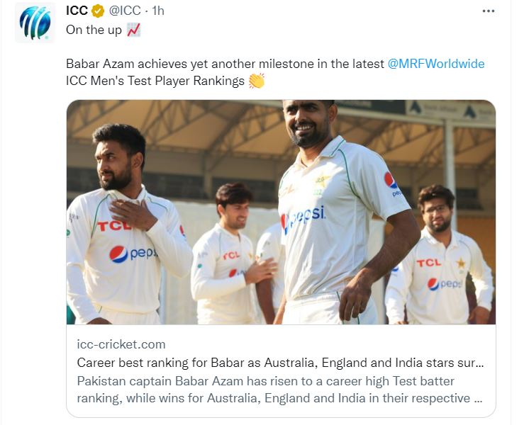 ICC Test Rankings इंग्लैंड के खिलाफ हार के बाद भी पाकिस्तान के कप्तान बाबर आजम को रैंकिंग में फायदा हुआ है। वह टेस्ट क्रिकेट के अपने बेस्ट रैंकिंग में पहुंच गए हैं। अब उनसे ऊपर केवल ऑस्ट्रेलिया के बल्लेबाज मार्नस लबुशाने हैं।