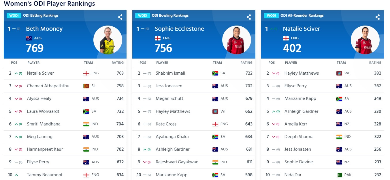 ICC Women's ODI Ranking: वनडे बल्लेबाजी रैकिंग में हुआ बदलाव