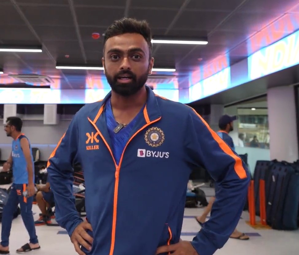 सबसे पहले जयदेव टीम इंडिया के मिडिल ऑर्डर बल्लेबाज सूर्यकुमार यादव के पास जाते हैं और उनसे पूछते है कि सूर्या आपको कैसा फील हो रहा है इस नए ड्रेसिंग रूम में बैठकर? तो इसका जवाब देते हुए सूर्यकुमार कहते हैं कि सबसे पहले मैं इस ड्रेसिंग रूम में आया, तो मैंने देखा कि यह काफी बड़ा है, जहां मैं अपना पूरा सामना रख सकता हूं। यहां अच्छा लॉकर है, जहां मैं अपना किट बैग और अपनी कैप, हेलमेट रख सकता हूं। खासतौर पर एक बोर्ड पर टीम इंडिया का नाम देखकर मुझे काफी खुशी मिली।