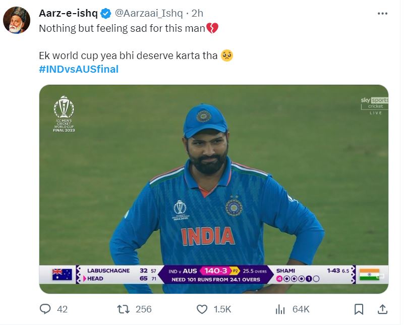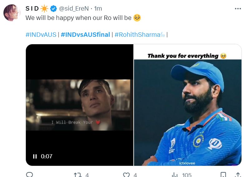 वहीं, फैंस ने रोहित शर्मा और विराट कोहली के लिए भावुक पोस्ट किए। फैंस ने सोशल मीडिया पर लिखा, यह दुःखद है, लेकिन रोहित शर्मा एक योद्धा हैं। कई फैंस ने रोहित के भावुक होने के फोटो शेयर करते हुए लिखा कि यह दिल तोड़ने वाला सदमा है।