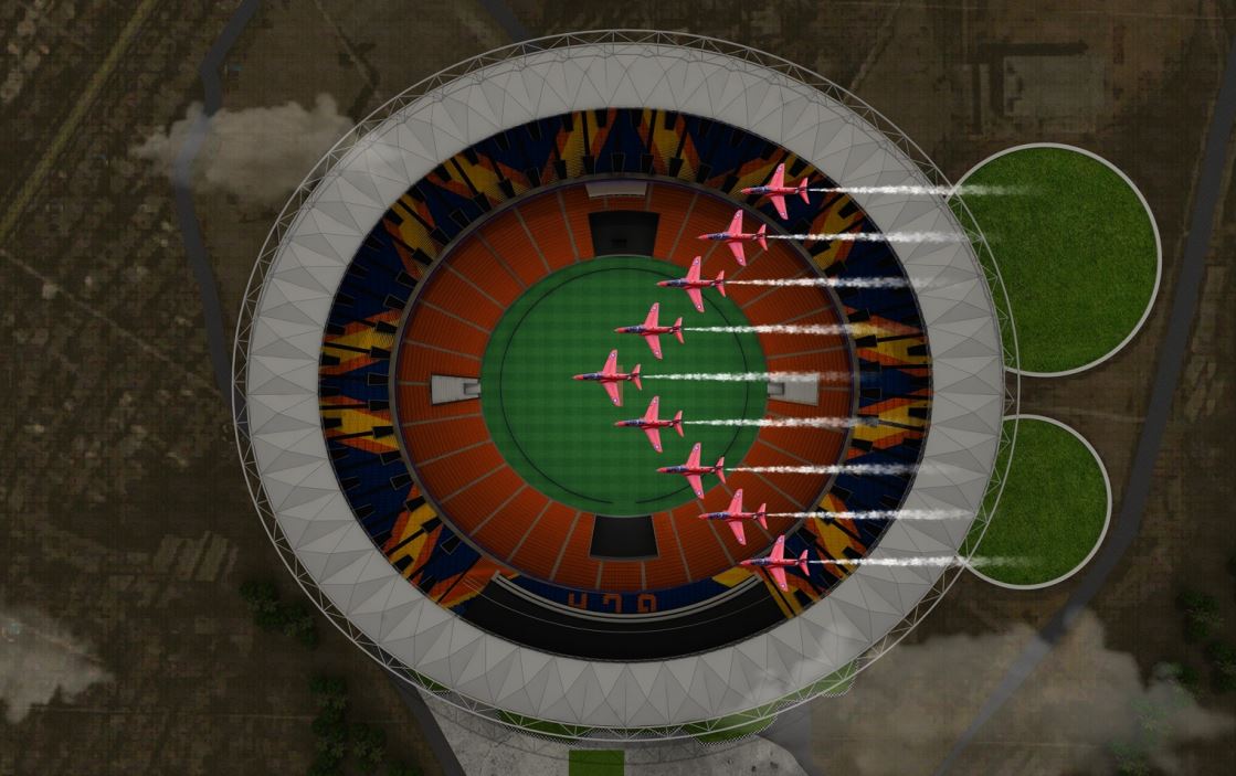 वर्ल्ड कप 2023 की क्लोजिंग सेरेमनी के पहले हिस्से में भारतीय वायुसेना द्वारा 10 मिनट का एयर शो किया जाएगा। भारतीय वायुसेना की सूर्यकिरण एक्रोबेटिक टीम के फ्लाइट कमांडर और डिप्टी टीम लीडर विंग कमांडर सिधेश कार्तिक के नेतृत्व में एशिया में केवल 9 हॉक एक्रोबेटिक टीम अपनी कलाबाजी दिखाएंगे। अहमदाबाद हवाईअड्डे से उड़ान भरकर और नरेंद्र मोदी स्टेडियम के ऊपर वर्टिकल एयर शो करेंगी।