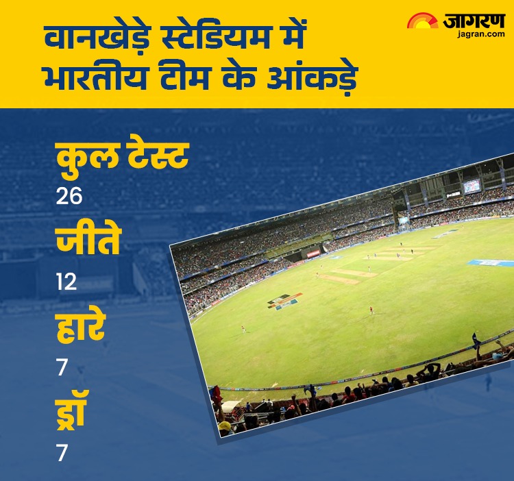 - मुंबई के वानखेड़े स्टेडियम में भारतीय टीम के टेस्ट आंकड़े शानदार हैं।