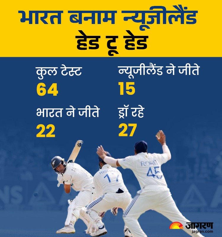 भारतीय क्रिकेट टीम और न्यूजीलैंड क्रिकेट टीम के बीच हेड टू हेड के आंकड़ों पर नजर डालें तो टीम इंडिया कहीं ताकतवर नजर आती है। दोनों टीमों के बीच अब तक 64 टेस्ट मैच खेले गए हैं। इस दौरान भारतीय टीम ने 22 मैच जीते हैं।
