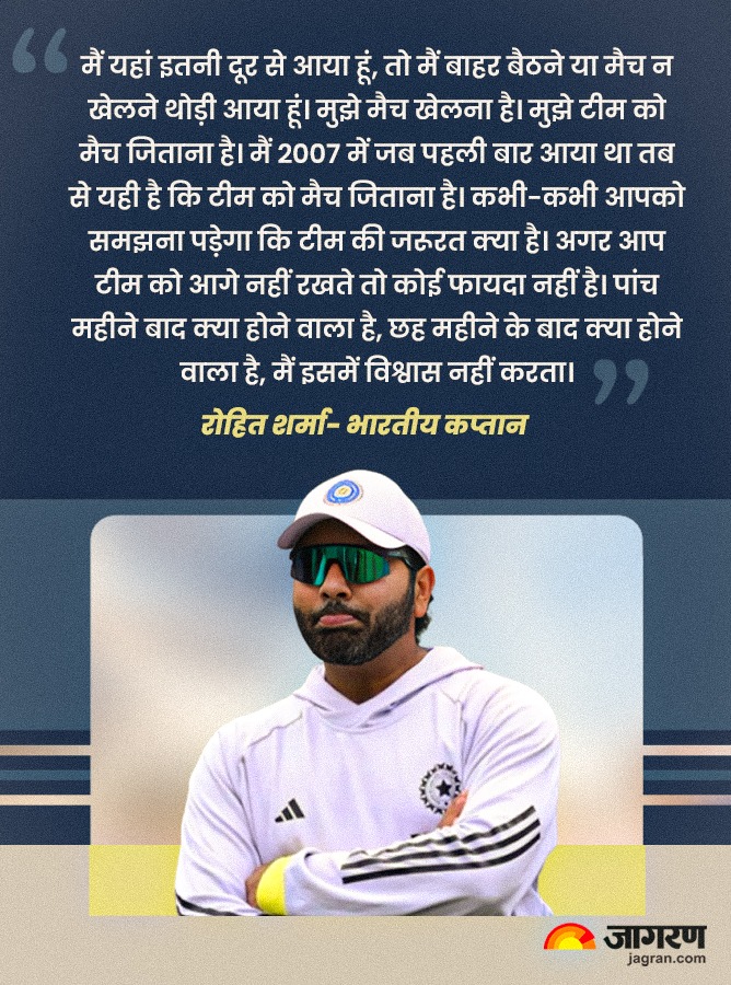 रोहित ने आगे कहा, "यह मेरे लिए एक कठिन निर्णय था, लेकिन अगर आप सब कुछ ध्यान में रखते हैं तो ये एक समझदारी भरा फैसला भी था। मैं यहां इतनी दूर से आया हूं, तो मैं बाहर बैठने या मैच न खेलने थोड़ी आया हूं। मुझे मैच खेलना है। मुझे टीम को मैच जिताना है। मैं 2007 में जब पहली बार आया था तब से यही है कि टीम को मैच जिताना है। कभी-कभी आपको समझना पड़ेगा कि टीम की जरूरत क्या है। अगर आप टीम को आगे नहीं रखते तो कोई फायदा नहीं है। पांच महीने बाद क्या होने वाला है, छह महीने के बाद क्या होने वाला है, मैं इसमें विश्वास नहीं करता।"