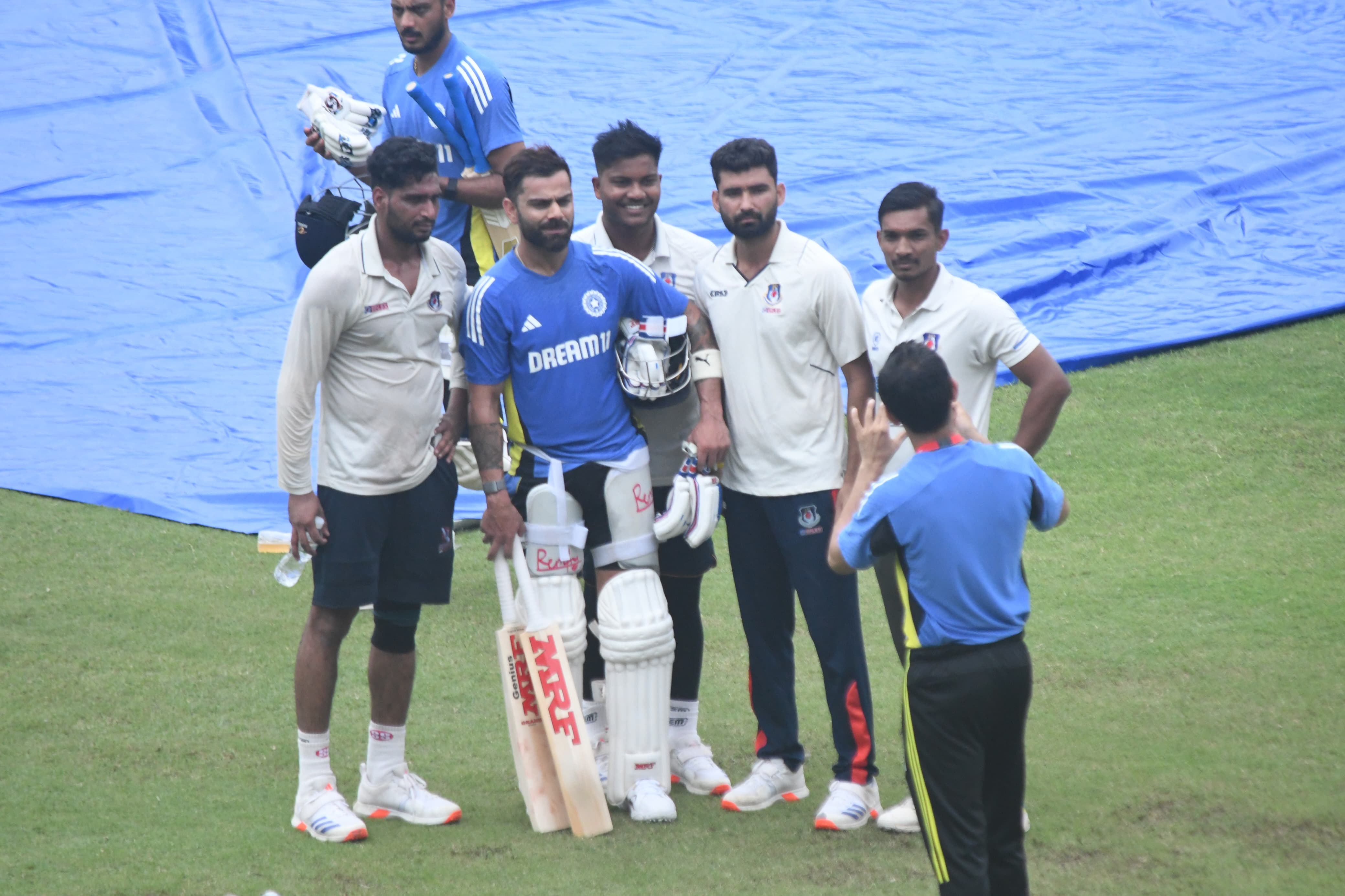 भारत बनाम बांग्लादेश के बीच दूसरे टेस्ट से पहले प्रैक्टिस सेशन में विराट कोहली के साथ नेट्स बॉलर तस्वीर खिंचवाते हुए नजर आए।