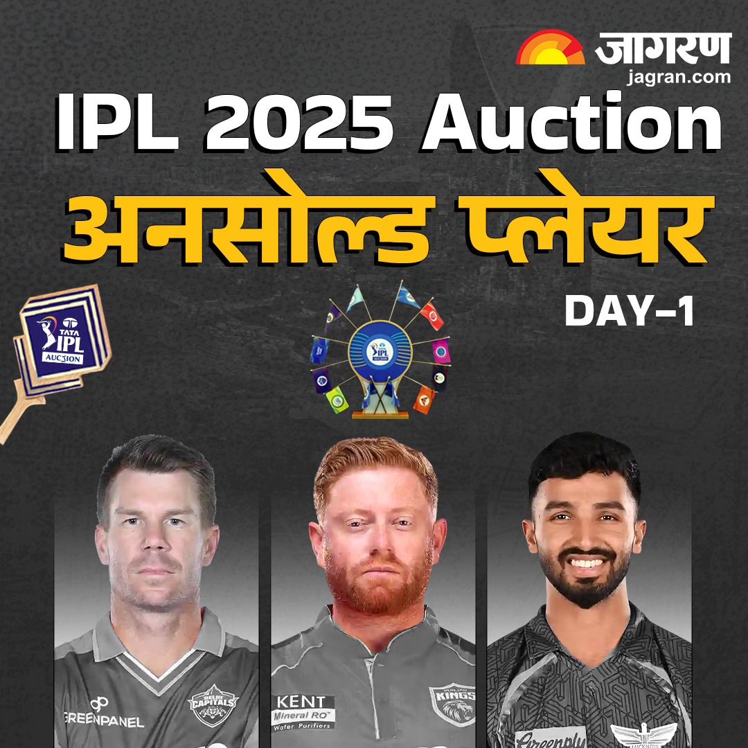 दूसरी ओर पहले दिन कई दिग्गज ऐसे भी रहे जिन पर किसी भी फ्रेंचाइजी ने बोली नहीं लगाई। ऐसे में यह प्लेयर अनसोल्ड रहे। इस लिस्ट में सबसे ज्यादा चौंकाने वाला नाम डेविड वॉर्नर का है। अपनी कप्तानी में सनराइजर्स हैदराबाद को चैंपियन बनाने वाले डेविड वॉर्नर पर मेगा ऑक्शन में किसी भी फ्रेंचाइजी ने रुचि नहीं दिखाई।