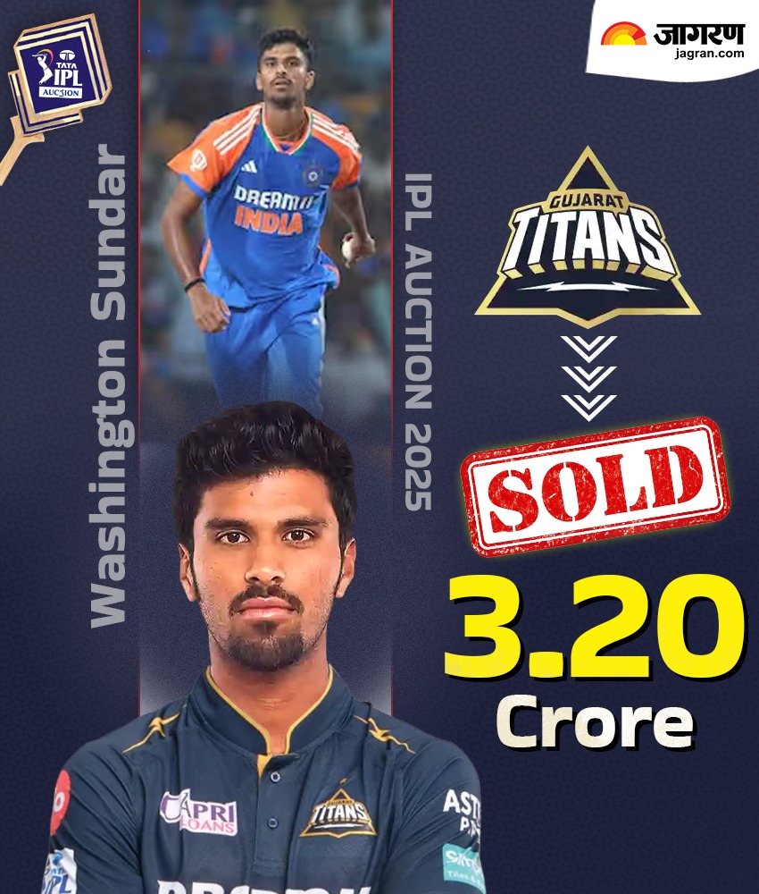 स्पोर्ट्स डेस्क, नई दिल्ली। दो करोड़ के बेस प्राइस वाले वाशिंगटन सुंदर को गुजरात टाइटंस ने खरीदा। हरफनमौला खिलाड़ी वाशिंगटन सुंदर पर गुजरात ने काफी देर सोच विचार के बाद दो करोड़ के उनके बेस प्राइस पर दांव खेला। बाद में गुजरात ने 3.20 करोड़ में वाशिंगटन को खरीद लिया। वाशिंगटन सुंदर इससे पहले सनराइजर्स हैदराबाद के लिए खेल रहे थे। उन्हें हैदराबाद ने 8.75 करोड़ में खरीदा था।