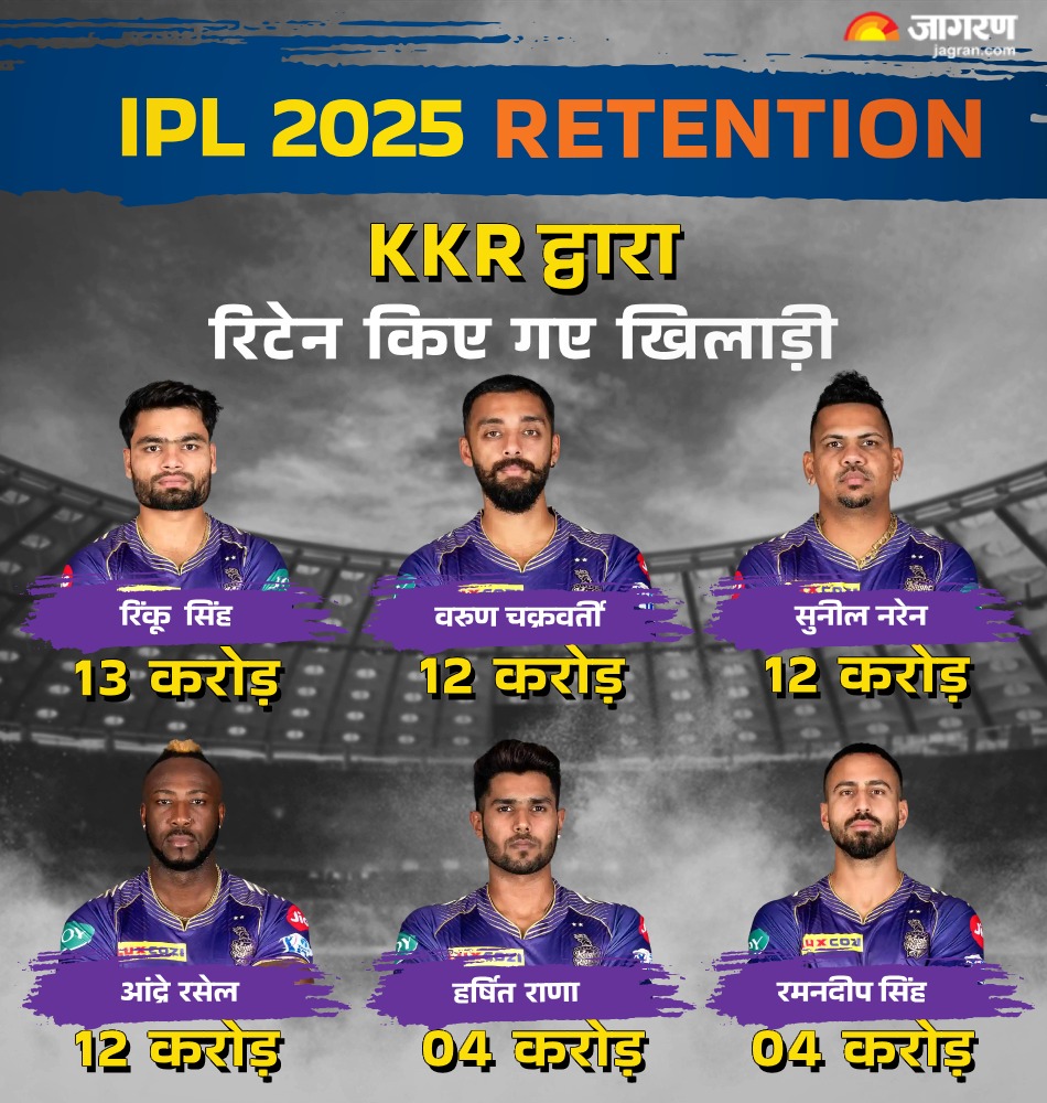 स्पोर्ट्स डेस्क, नई दिल्ली। IPL 2025 के लिए सभी 10 फ्रेंचाइजी ने अपने रिटेन प्लेयर्स की लिस्ट जारी कर दी है। कोलकाता नाइटराइडर्स और राजस्थान रॉयल्स ने सबसे ज्यादा 6-6 प्लेयर को अपने साथ बरकरार रखा है।
