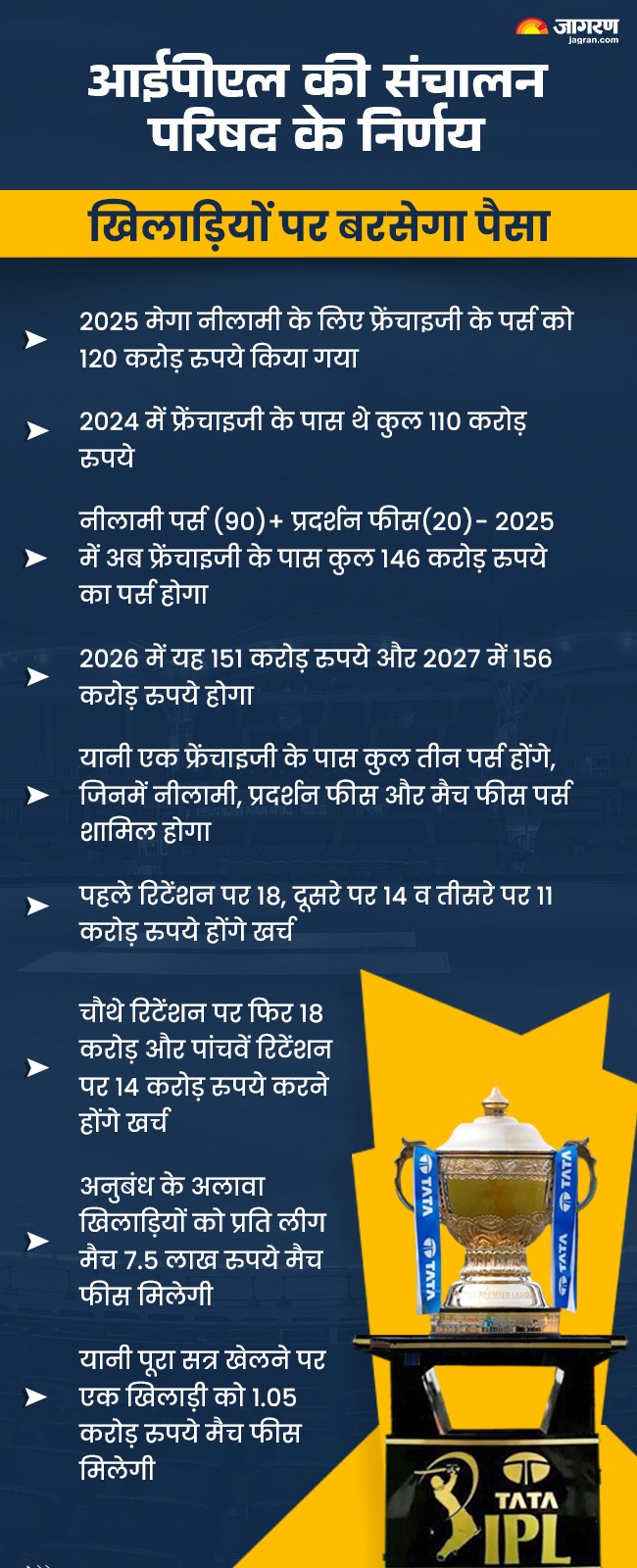 2025 मेगा नीलामी के लिए फ्रेंचाइजी के पर्स को 120 करोड़ रुपये किया गया