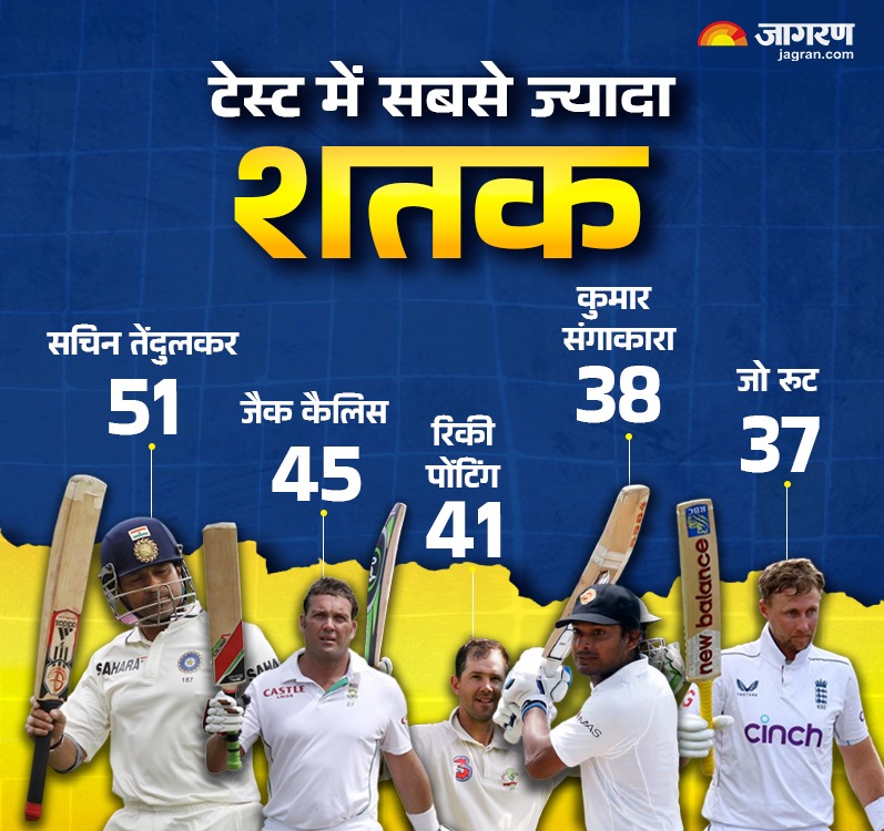 ऑस्ट्रेलिया की पूर्व कप्तान रिकी पोंटिंग तीसरे और श्रीलंका के कुमार संगाकारा चौथे पायदान पर हैं। पोटिंग ने अपने टेस्ट करियर में 168 मैच खेले और 287 पारियों में 41 शतक जमाए। वहीं संगाकारा ने 134 टेस्ट मुकाबलों में 38 शतक जड़ दिए थे। अब टॉप 5 में जो रूट की भी एंट्री हो गई है। रूट इस सीरीज में संगाकारा का रिकॉर्ड भी तोड़ सकते हैं।