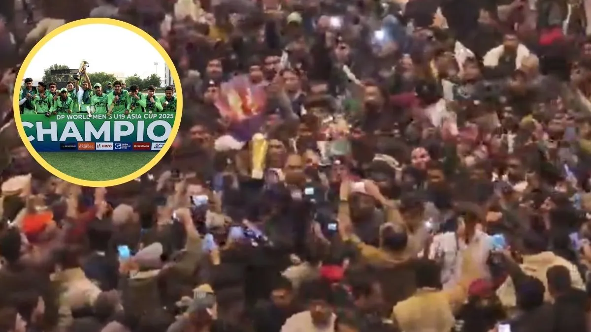 भी इस दौरान अंडर-19 एशिया कप की ट्रॉफी को हाथ में लेकर फैंस का अभिवादन करते नजर आए। सोशल मीडिया पर फैंस इस स्वागत को शाही इस्तकबाल कह रहे हैं, क्योंकि सालों बाद पाकिस्तान ने किसी बड़े टूर्नामेंट के फाइनल में भारत को मात दी है।
