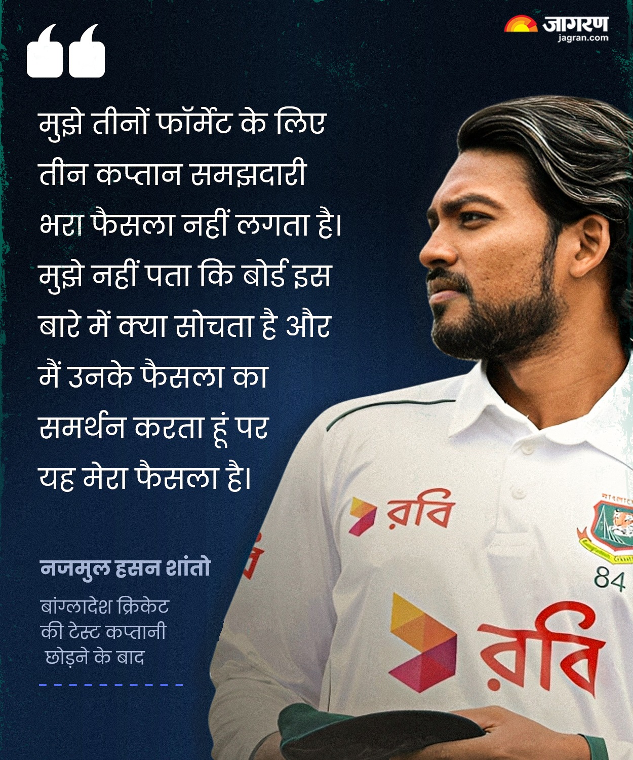 स्पोर्ट्स डेस्क, नई दिल्ली। बांग्लादेश के कप्तान नजमुल हसन शांतो ने टेस्ट क्रिकेट की कप्तानी छोड़कर सभी को चौंका दिया। श्रीलंका के खिलाफ दूसरे टेस्ट मैच में मिली शर्मनाक हार के बाद शांतो यह फैसला लिया। फैंस इस फैसले से हैरान हैं क्योंकि नजमुल हसन शांतो ने पहले टेस्ट की दोनों पारियों में शतक जड़ा था।