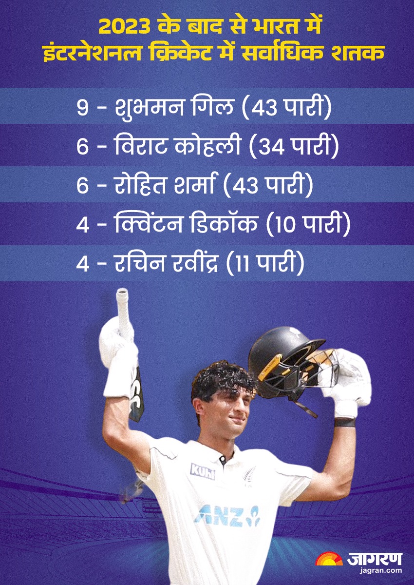 2023 के बाद से भारत में इंटरनेशनल क्रिकेट में सर्वाधिक शतक