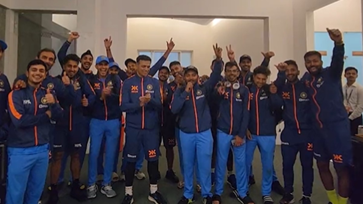 दरअसल, लखनऊ के इकाना स्टेडियम में खेले गए दूसरे टी-20 मुकाबले में भारतीय टीम ने 6 विकेट से शानदार जीत दर्ज की। वहीं, दूसरी ओर भारतीय महिला टीम ने इंग्लैंड को अंडर-19 विश्व कप के फाइनल मैच में 7 विकेट से मात देकर शानदार दर्ज की और पहली बार विश्व चैंपियन बनी। इस मैच के बाद भारतीय टीम के कोच राहुल द्रविड़ (Rahul Dravid India Coach) ने महिला टीम को एक खास अंदाज में बधाई दी।