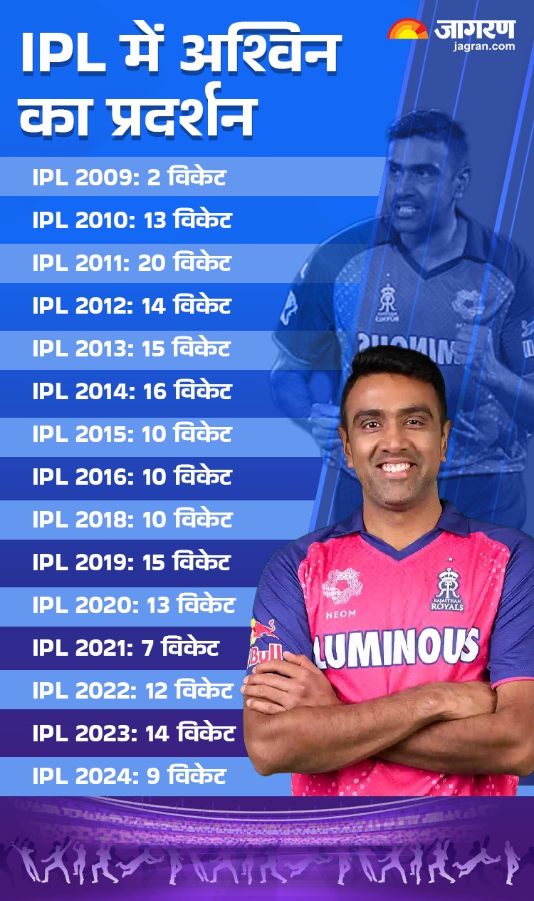 रविचंद्रन अश्विन आईपीएल में चौथे सबसे ज्यादा विकेट लेने वाले भारतीय गेंदबाज हैं। उन्होंने लीग में अब तक 212 मैच खेले हैं। इस दौरान 208 पारियों में अश्विन ने 29.82 की औसत और 7.12 की इकॉनमी से 180 विकेट लिए हैं। 4/34 आईपीएल में उनका सर्वश्रेष्ठ गेंदबाजी प्रदर्शन है। पिछले सीजन अश्विन का प्रदर्शन कुछ खास नहीं रहा था। उन्होंने 14 मुकाबलों में सिर्फ 9 विकेट ही चटकाए थे।