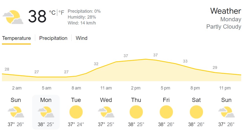 मुंबई और आरसीबी टीम के बीच खेले जाने वाले मैच में बारिश की संभावना न के बराबर है। मैच में तापमान 25 डिग्री और 38 डिग्री के बीच रहने वाला है। यानी मैच बिना किसी रुकावट के खेला जाएगा।