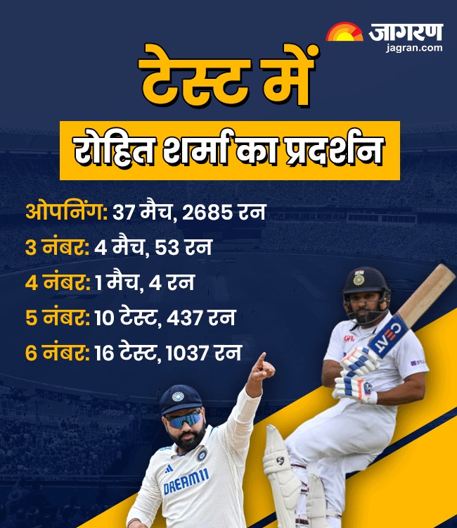 अपने टेस्ट करियर की शुरुआत में रोहित शर्मा 5-6 नंबर पर बल्लेबाजी करते थे। 5 नंबर पर उन्होंने 10 टेस्ट खेले हैं और 29.13 की औसत से 437 रन बनाए हैं। साथ ही 6 नंबर पर हिटमैन ने 16 टेस्ट में 54.57 की बेहतरीन औसत से 1037 रन ठोके हैं। इस दौरान उनके बल्ले से 3 शतक निकले हैं।