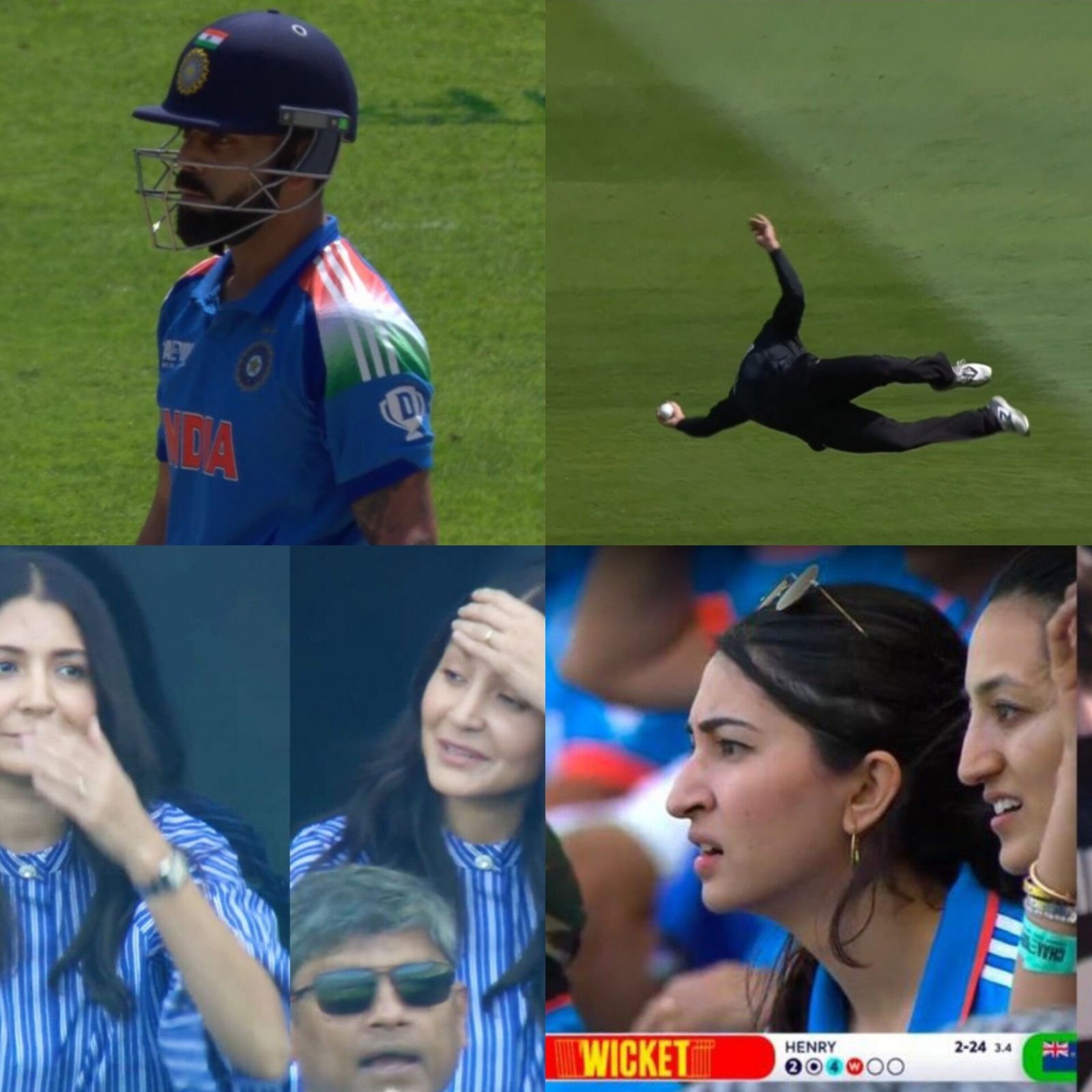 कोहली ने कुछ अच्छे शॉट्स लगाकर बाउंड्री बटोरी थी, लेकिन फिलिप्स ने उनकी पारी को छोटा कर दिया। मैट हेनरी के ओवर की चौथी गेंद पर विराट कोहली ने एक बेहतरी शॉट खेला, लेकिन बैकवर्ड प्वाइंट पर खड़े फिलिप्स ने दांयी ओर हवा में उड़ते हुए एक हाथ से शानदार कैच लपका और कोहली को वापस पवेलियन भेजा। ग्लेन फिलिप्स का कैच देख भारतीय फैंस हैरान रह गए। वहीं, स्टैंड में बैठी विराट की पत्नी अनुष्का भी दंग रह गईं।