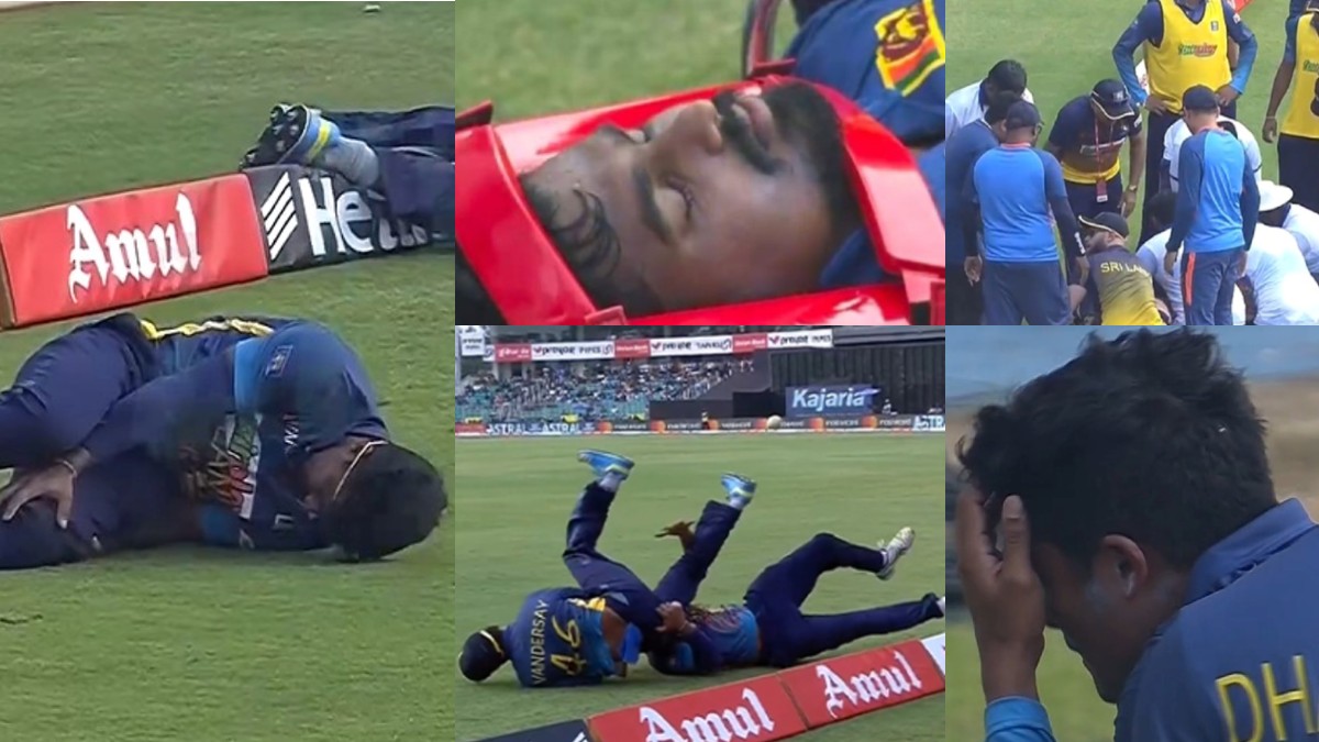 ये दोनो खिलाड़ी अशेन बंडारा और जेफरी वैंडरसे (Ashen Bandara and Jeffrey Vandersay) थे, जो बिना एक दूसरे को देखते हुए गेंद को पकड़ने के लिए दौड़ पड़े। इस दौरान दोनों खिलाड़ी जमीन में गिरे और दर्द से बुरी तरह कराह उठे। उसके बाद मैदान पर श्रीलंका के फीडियो की टीम दौड़े चले आई।