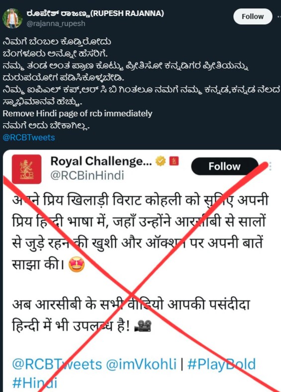 कोहली की RCB टीम की फजीहत...हिंदी में 'X' अकाउंट बनाना पड़ा भारी; कन्नड़ समर्थकों ने काटा बवाल