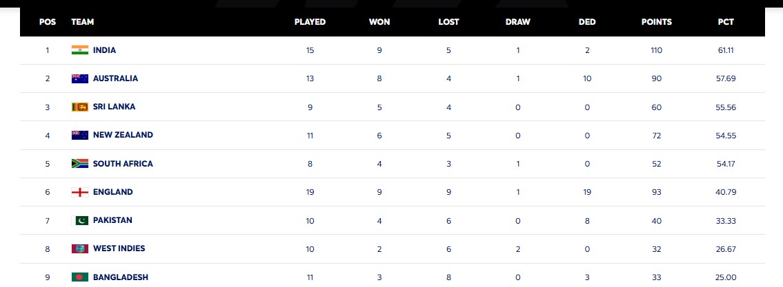 WTC Points Table में बांग्लादेश की टीम को तगड़ा नुकसान