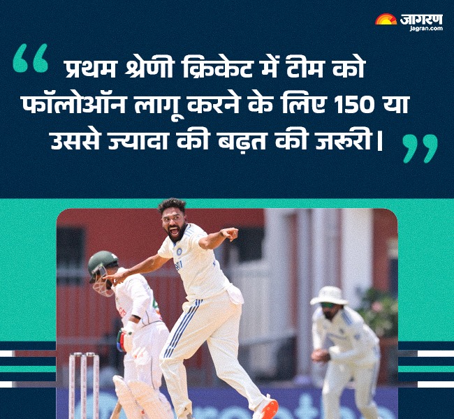 - रणजी ट्रॉफी जैसे घरेलू प्रथम श्रेणी क्रिकेट टूर्नामेंट में एक टीम को फॉलोऑन लागू करने के लिए 150 या उससे ज्यादा की बढ़त की जरूरत होती है।