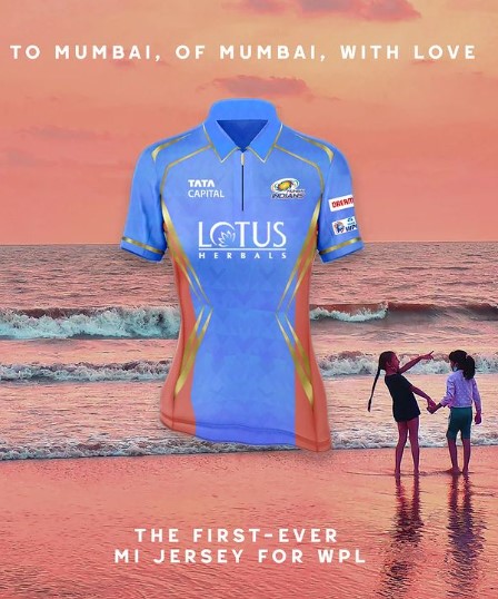 मुंबई इंडियंस (Mumbai Indians Jersey WPL) की जर्सी का रंग हलके नीले रंग का है, जिस पर साइड में डार्क गोल्डन बॉर्डर बने हुए है। इस दौरान कैपशन में फ्रेंचाइजी ने लिखा, ''यह रही हमारी पहली #WPL जर्सी, जिसमें सूरज, समुद्र और नीला और सोना सभी का मिश्रण है''