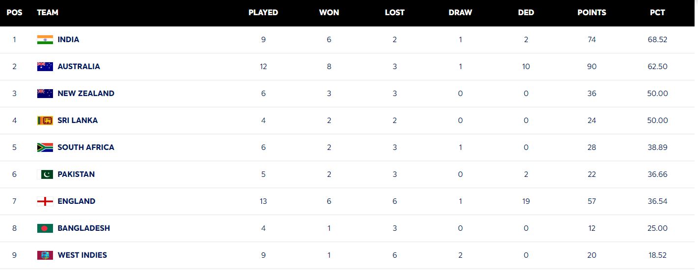 WTC Points Table: साउथ अफ्रीका ने पाकिस्तान को पछाड़ पांचवें स्थान पर जमाया कब्जा, भारत के सिर पर ताज