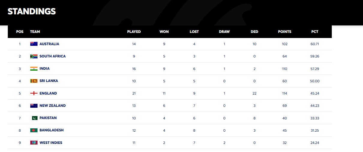 एडिलेड टेस्ट हारने के साथ ही WTC Points Table में नंबर-3 पर खिसकी भारतीय टीम