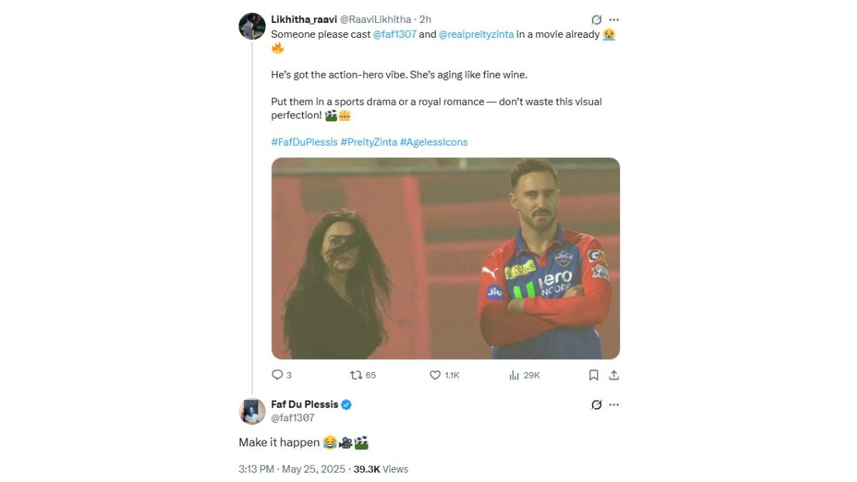 फाफ डु प्लेसी और प्रीति जिंटा फिल्म में साथ करेंगे काम, साउथ अफ्रीकी स्टार के एक पोस्ट ने फैंस को किया हैरान!