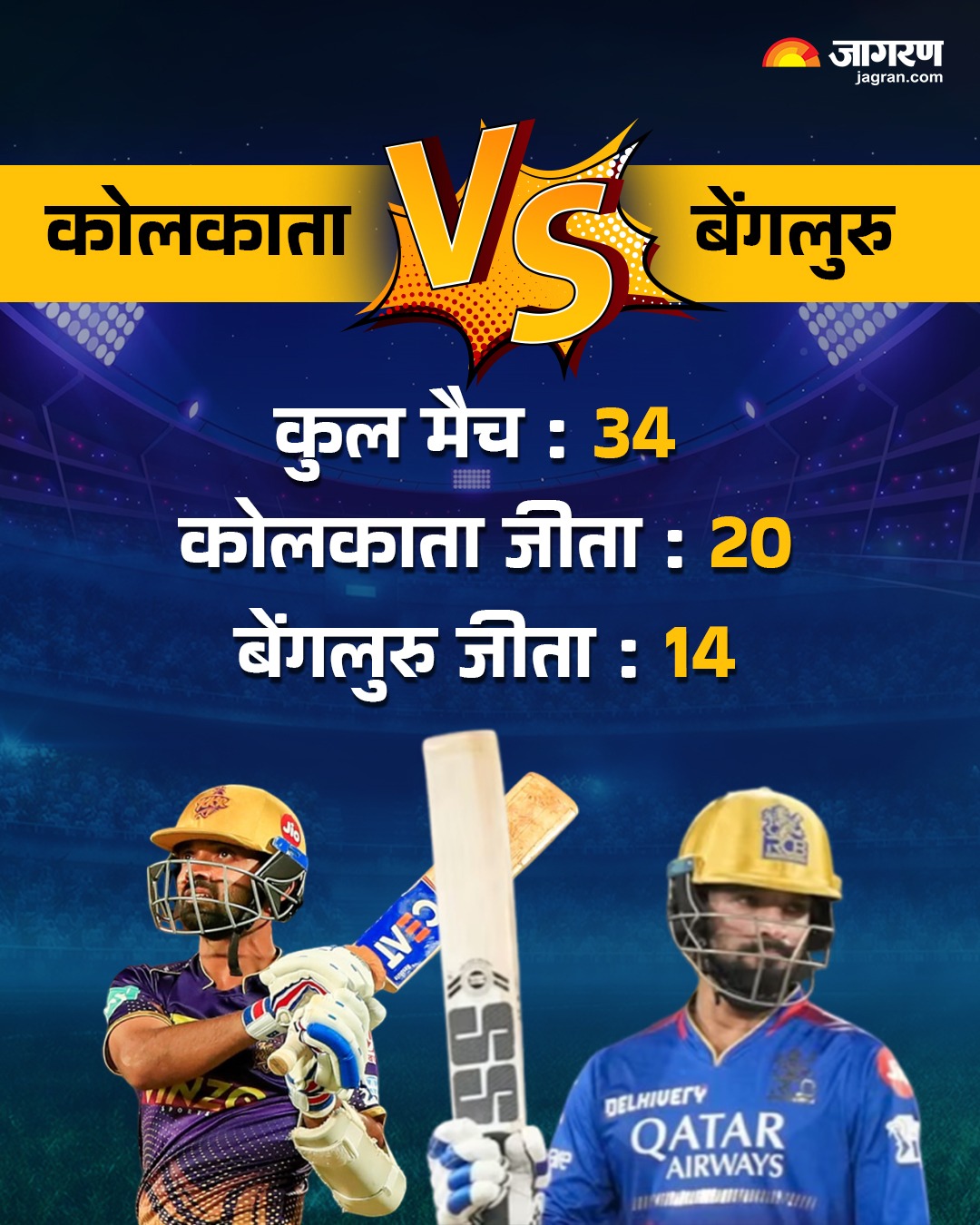 - पिछले 8 मुकाबलों में KKR ने 6 में जीत दर्ज की है। दूसरी ओर RCB केवल 2 मैच पर ही कब्जा जमा पाई है।