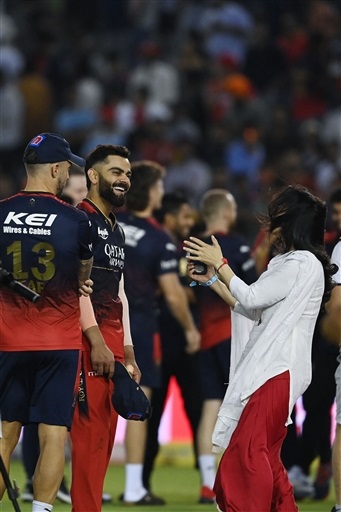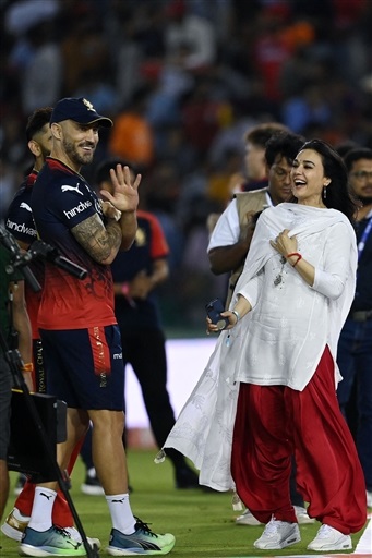मैच खत्म होने के बाद पंजाब किंग्स की सह-मालकिन प्रीति जिंटा ने बैंगलोर के खिलाड़ियों से मुलाकात की। उन्होंने फाफ डुप्लेसी और विराट कोहली से मुलाकात की।