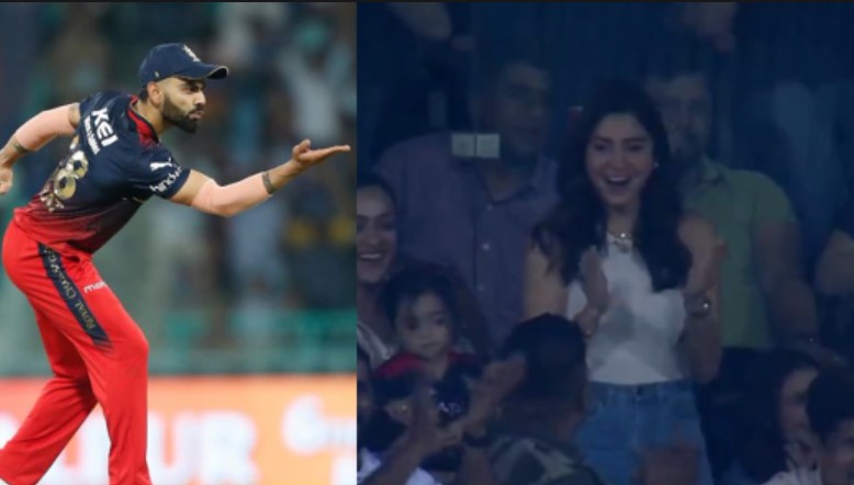 मैच में आरसीबी टीम के पूर्व कप्तान विराट कोहली ने भले ही बल्ले से महज 31 रन बनाए हो, लेकिन उन्होंने फील्डिंग के दौरान लखनऊ के दो बल्लेबाजों के कमाल के कैच लपके और हर किसी को एक बार फिर अपना दीवाना बना दिया। किंग कोहली ने मैच के दौरान दो कैच लपकने के बाद सीधा स्टैंड्स में बैठी अपनी पत्नी अनुष्का शर्मा की ओर देखा और उन्हें फ्लाइंग किस दी।