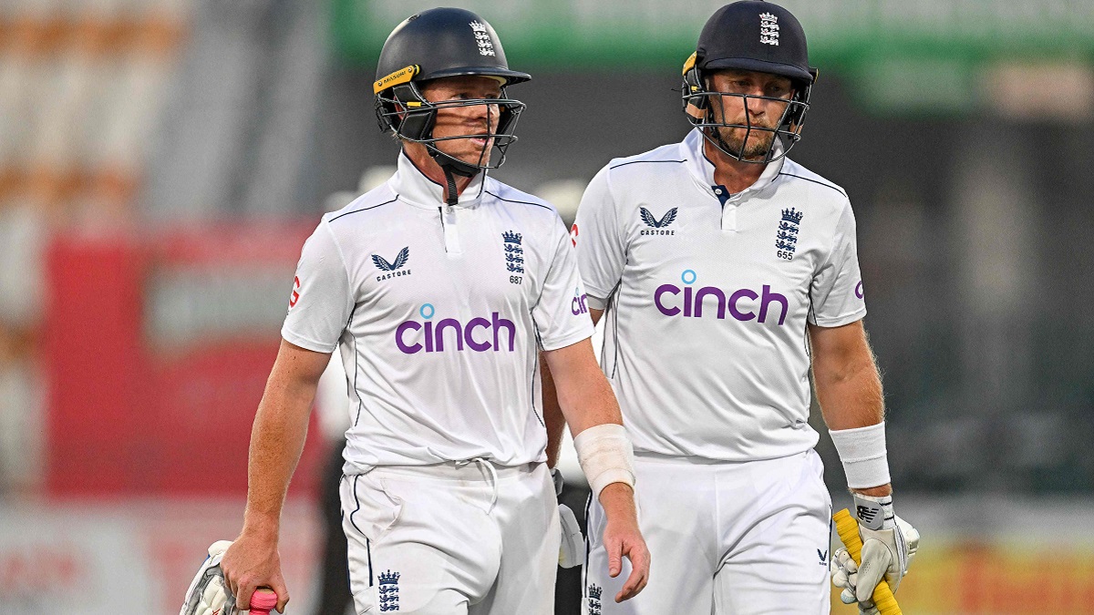 इस तरह इंग्लैंड को जीत के लिए 297 रन का लक्ष्य मिला। लक्ष्य का पीछा करने उतरी इंग्लैंड की शुरुआत अच्छी नहीं रही। साजिद खान ने पहली पारी के शतकवीर बेन डकेट को पहले ही ओवर में आउट कर दिया। डकेट खाता नहीं खोल पाए। जल्द ही नौमान अली ने दूसरे ओपनर जैक क्रॉली (3) को मोहम्मद रिजवान से स्टंपिंग आउट कराया।